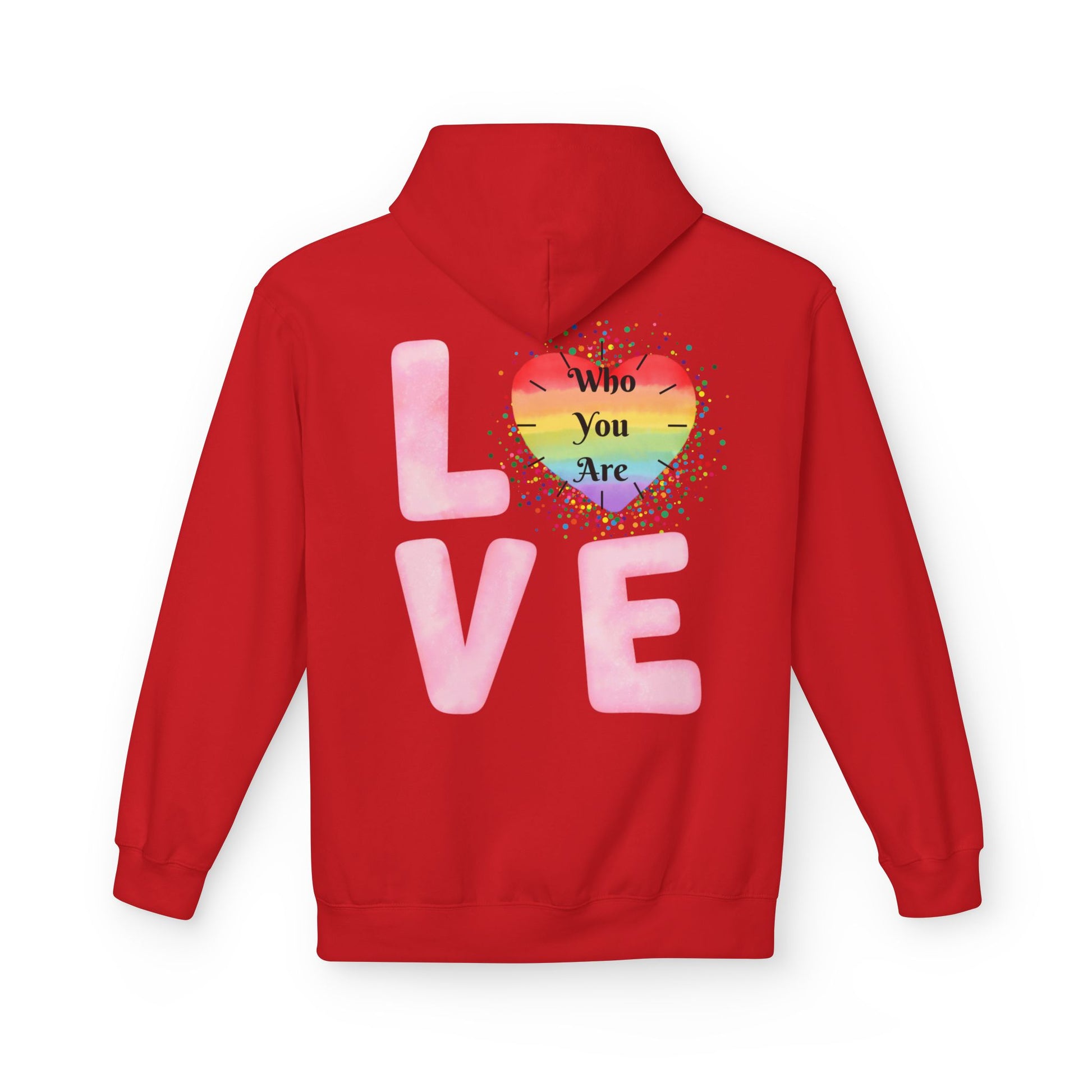 Elevate your style and comfort with this Unisex Softstyle Fleece Hoodie. This hoodie creates a warm and inviting atmosphere wherever you go, and reminding the wearer and whoever reads it to 'Love Who You Are'. The relaxed fit and soft fabric make it an ideal choice for everyday wear, whether you’re lounging at home or out with friends. Enjoy the feel-good vibes while showcasing your unique style!
