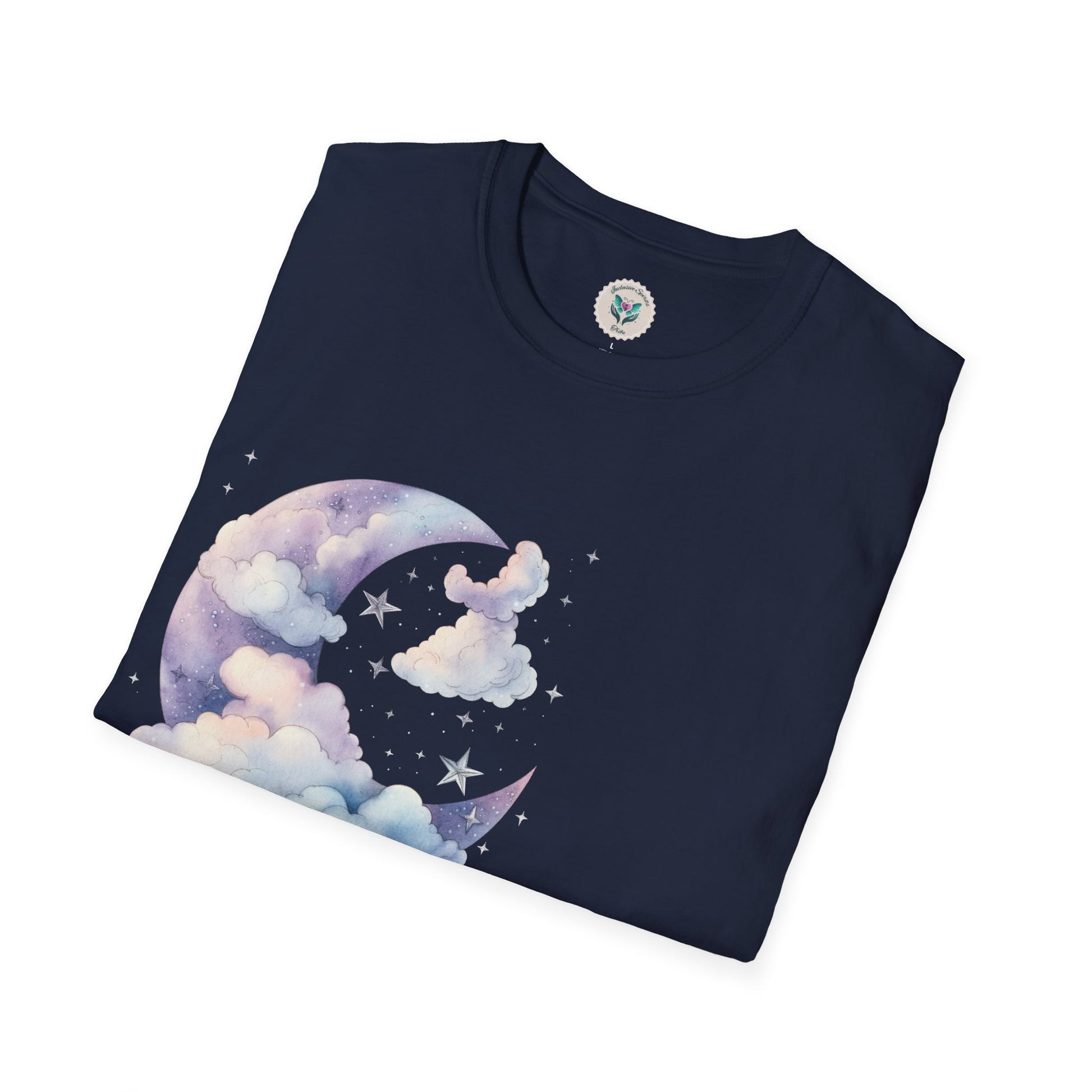 Calling all lovers of the moon! Embrace a sense of wonder and adventure with our unisex softstyle t-shirt, designed for dreamers and free spirits alike. This shirt boasts a unique and ethereal graphic that symbolizes the beauty of the cosmos, inspiring a free spirit. Crafted from sustainably sourced cotton, it offers a soft and comfortable fit that makes it perfect for both casual outings and relaxing at home.