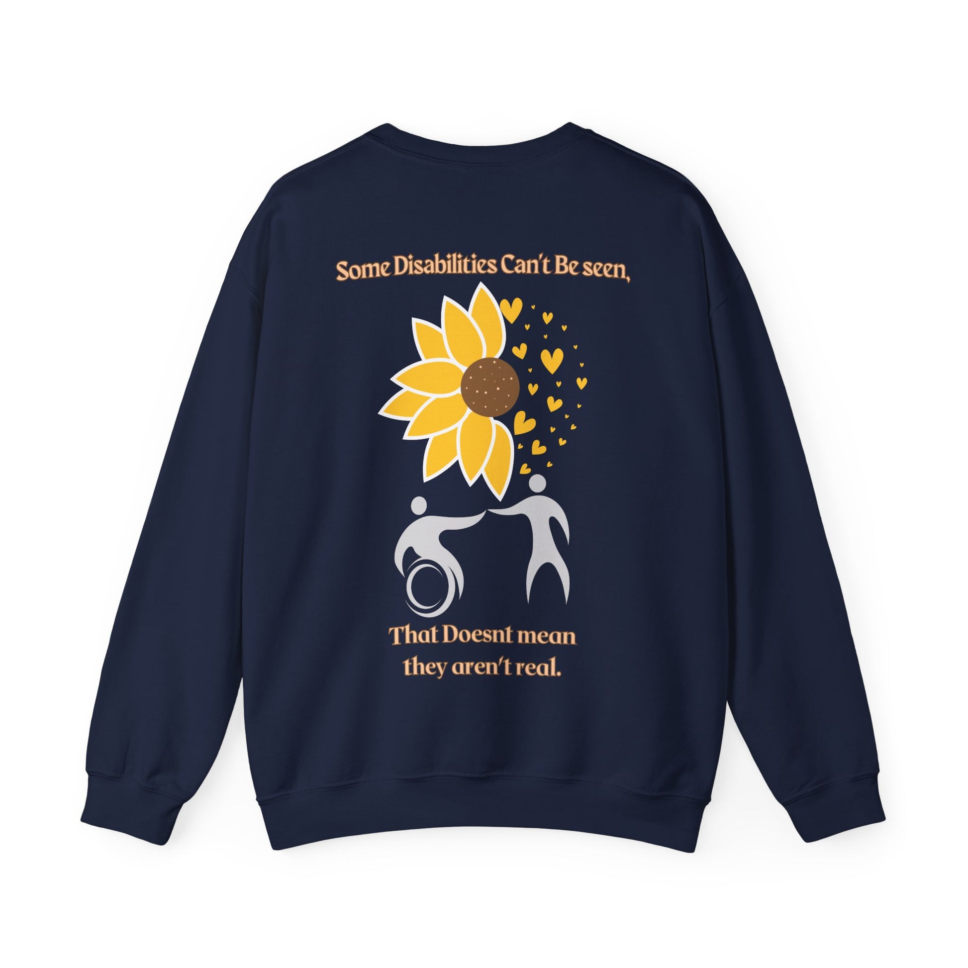 Embrace comfort with our stylish Crewneck Sweatshirt, designed for warmth and authenticity. This sweatshirt offers a thoughtful and empowering message on the back, perfect for raising awareness and promoting empathy. It's a great fit for individuals who value comfort and want to spread positivity and raise awareness for disabilities.