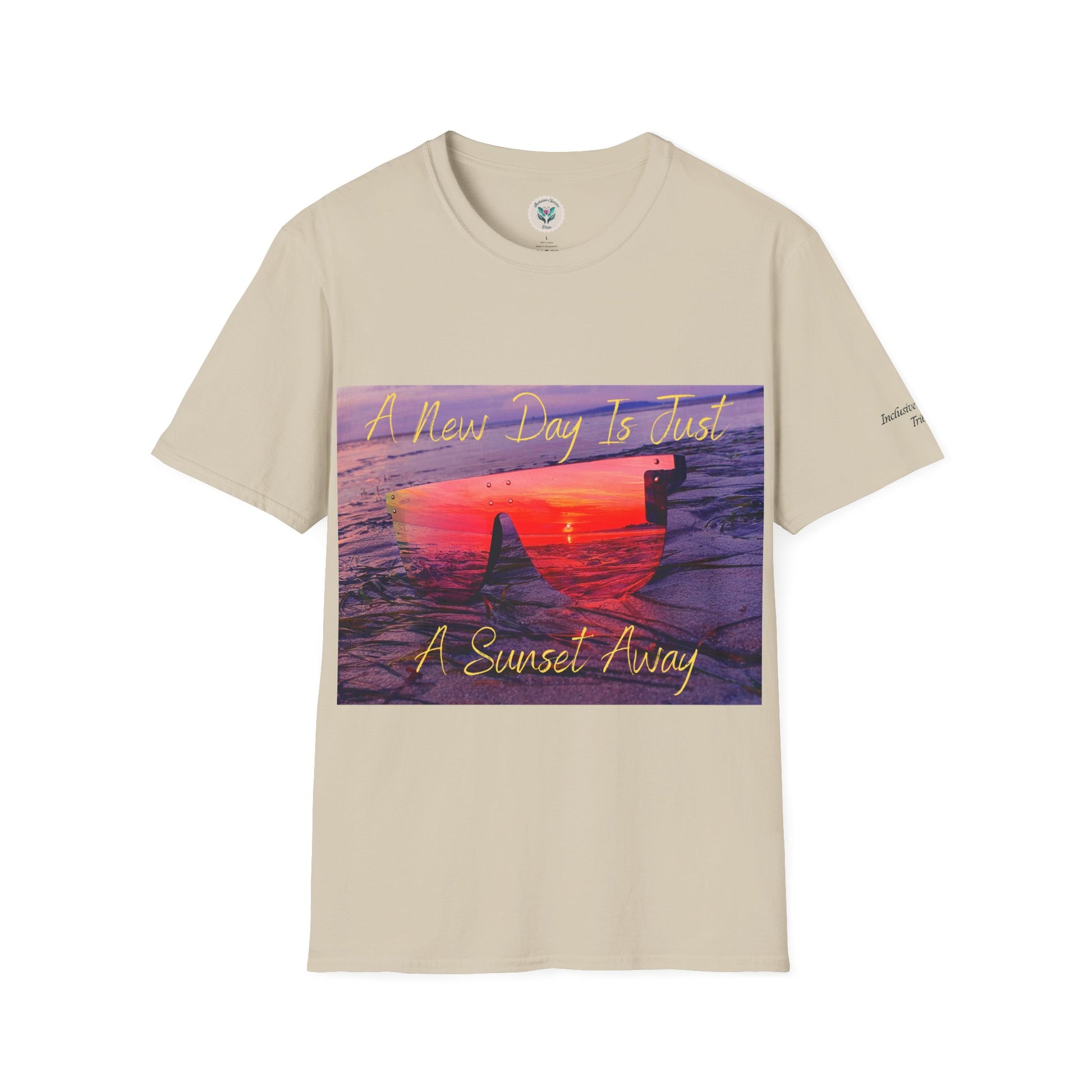 Elevate your casual wardrobe with this unisex softstyle t-shirt. It radiates a relaxed vibe, perfect for lazy weekends or casual outings. With its vibrant graphic design, it’s the perfect piece for remembering that a new day is just a sunset away.