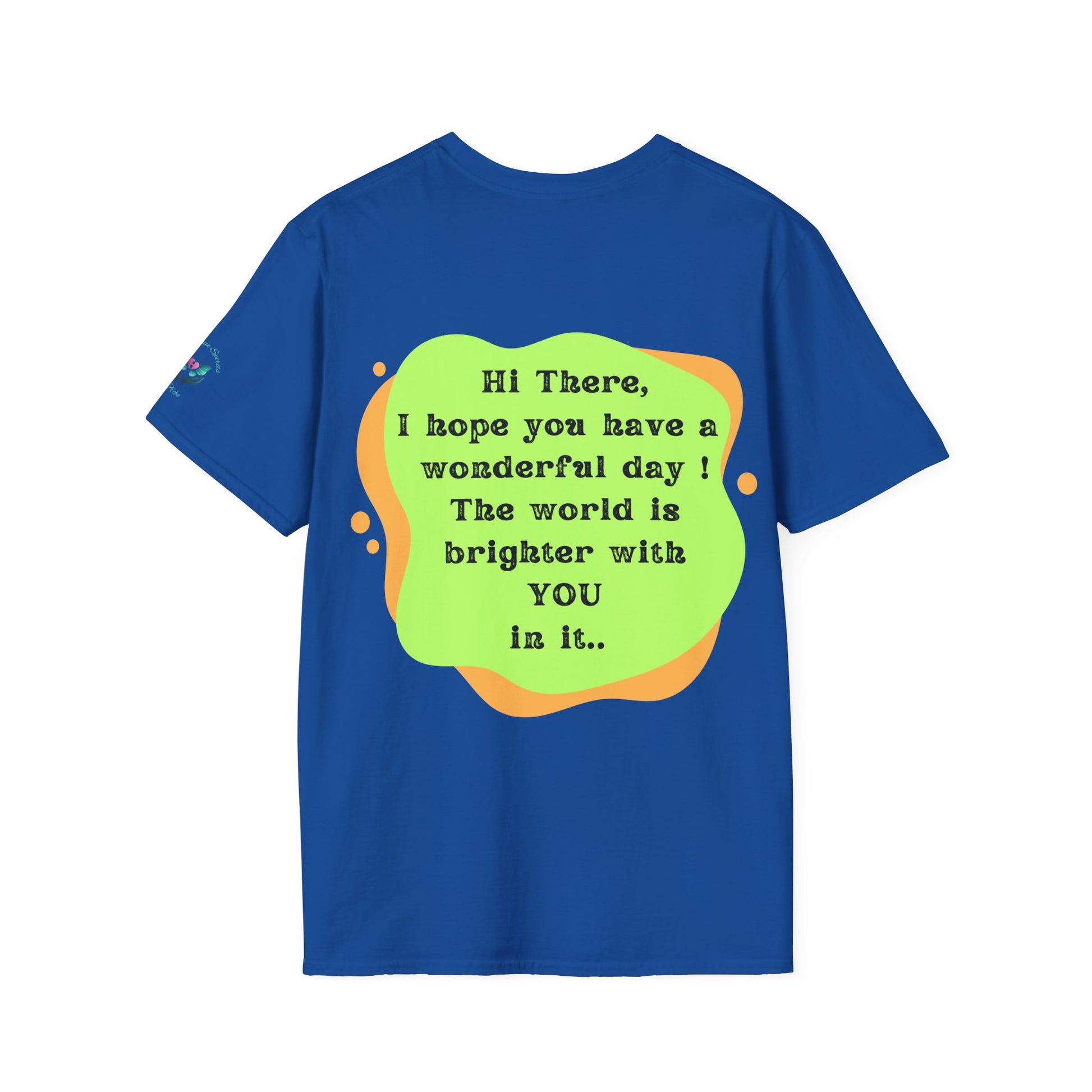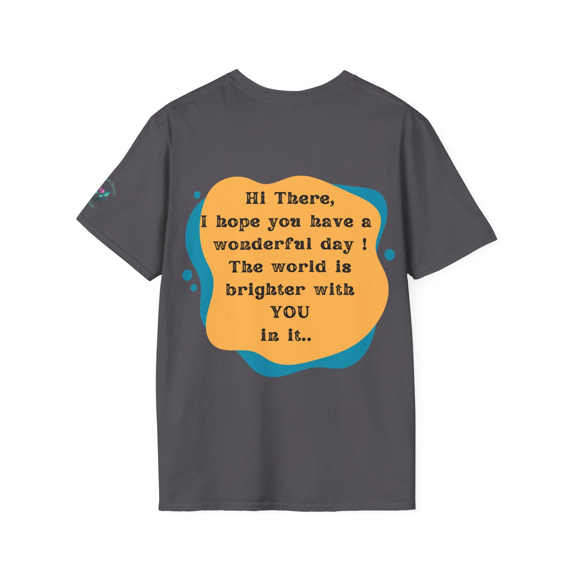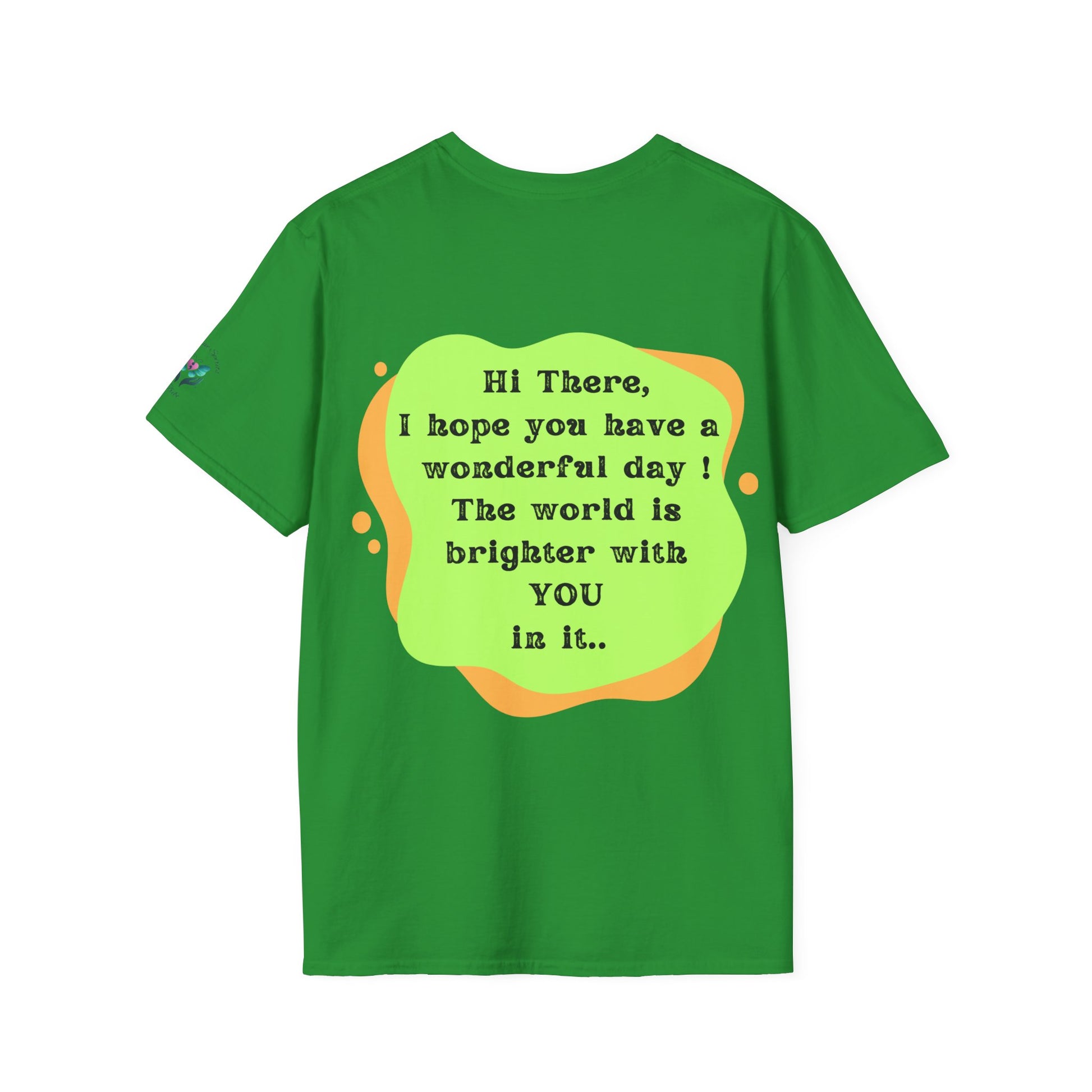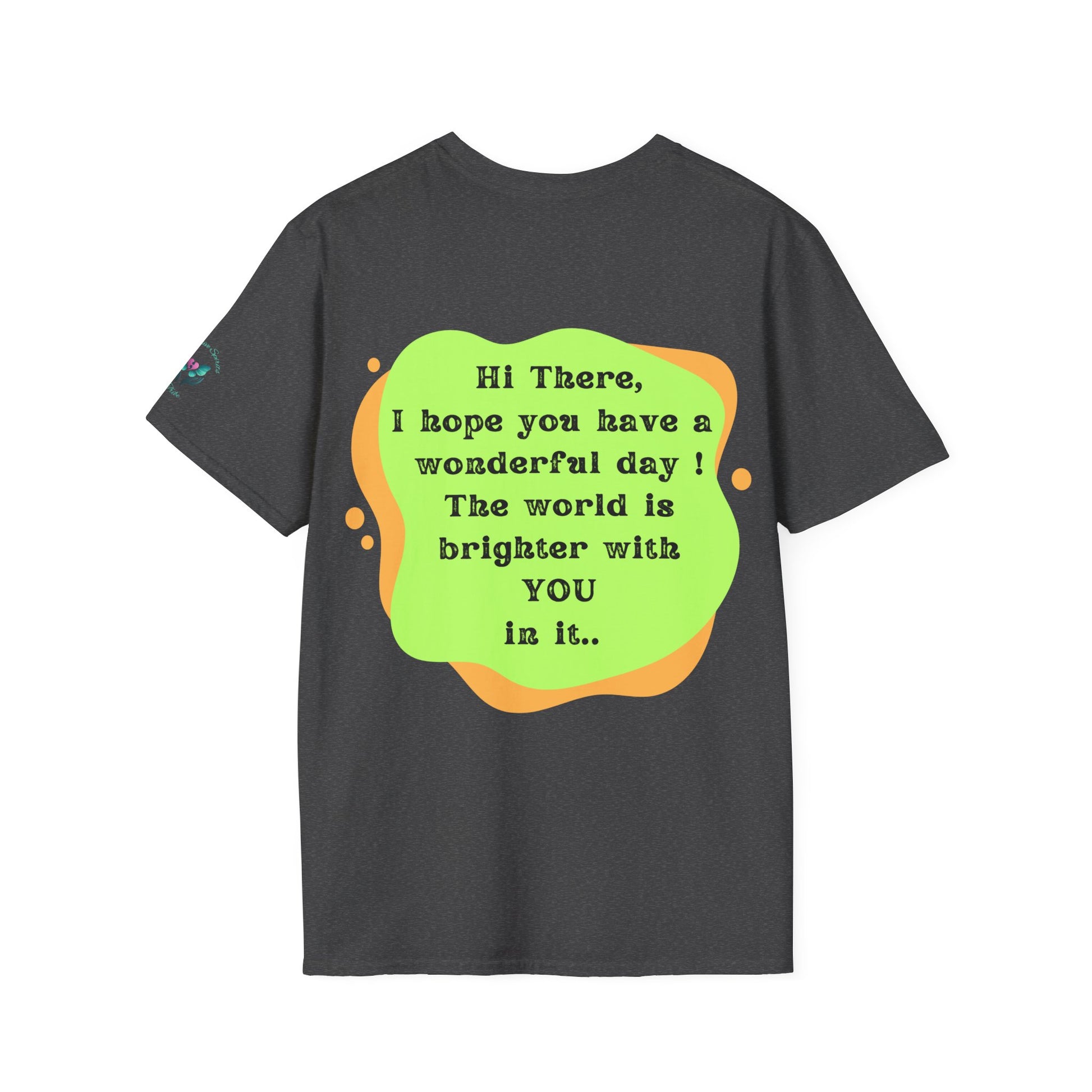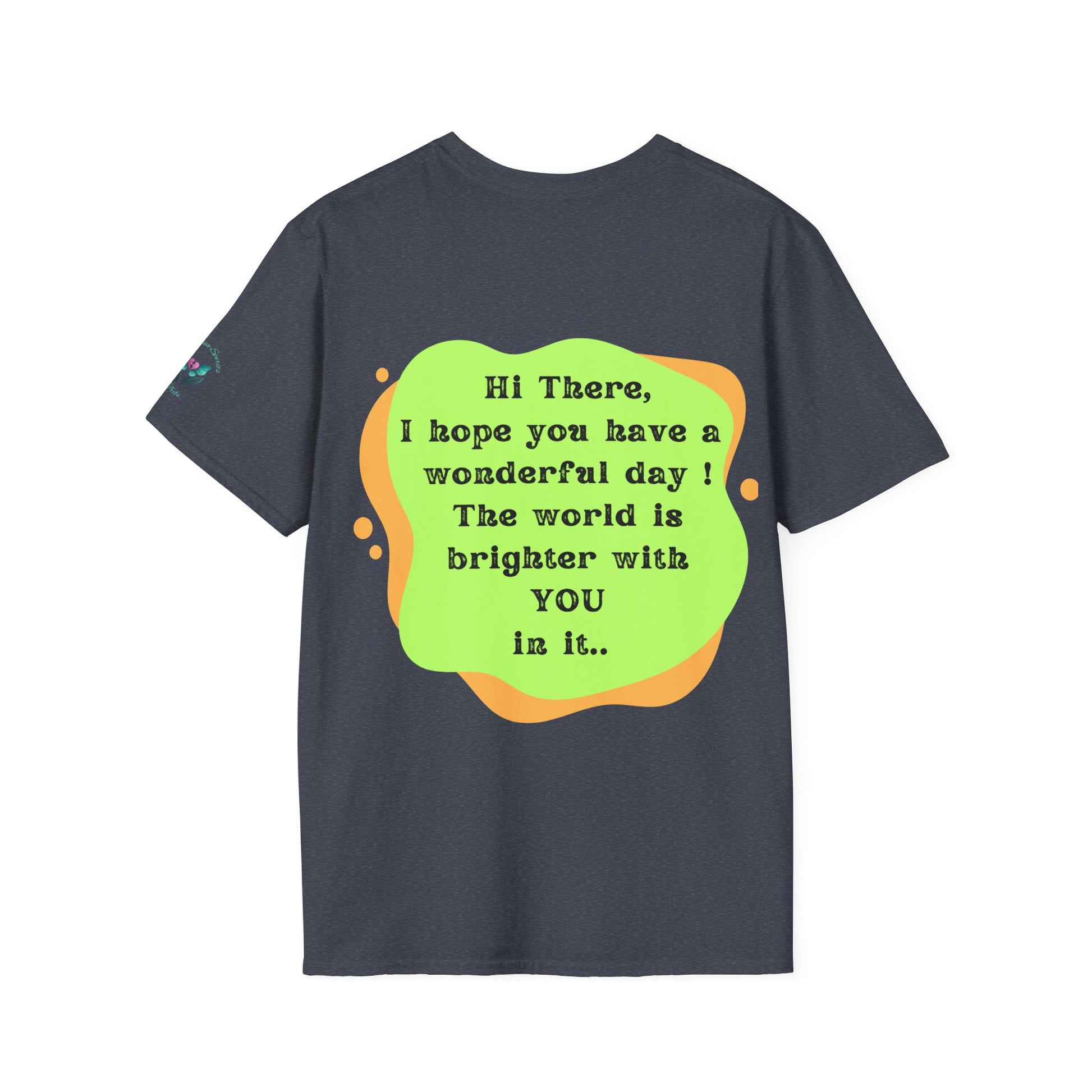 Introducing the ultimate Unisex Softstyle T-Shirt, a perfect blend of comfort and style. This garment radiates positivity with its cheerful message on the back, making it an ideal choice for anyone looking to uplift their day. Crafted from 100% ring-spun cotton, it feels light and soft against the skin, perfect for year-round wear. Spread the message to everyone around you that they make the world a little brighter just from being in it.