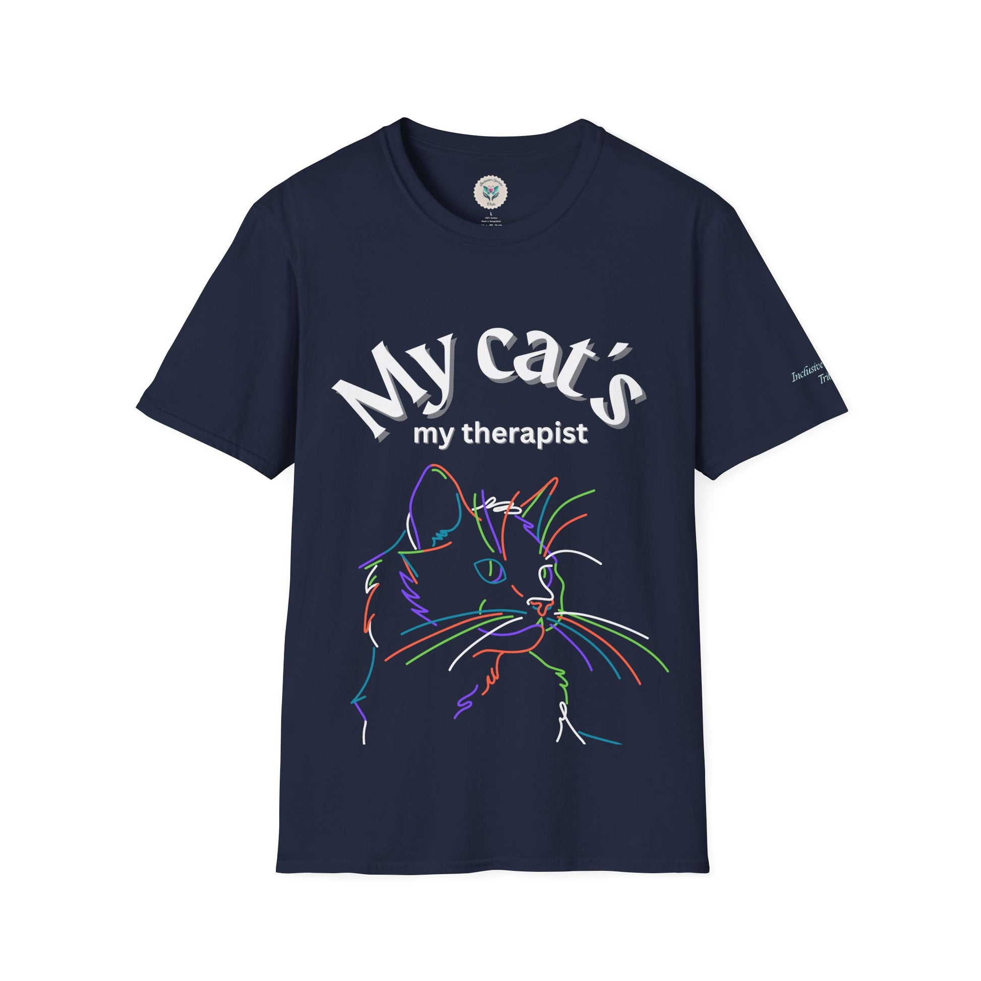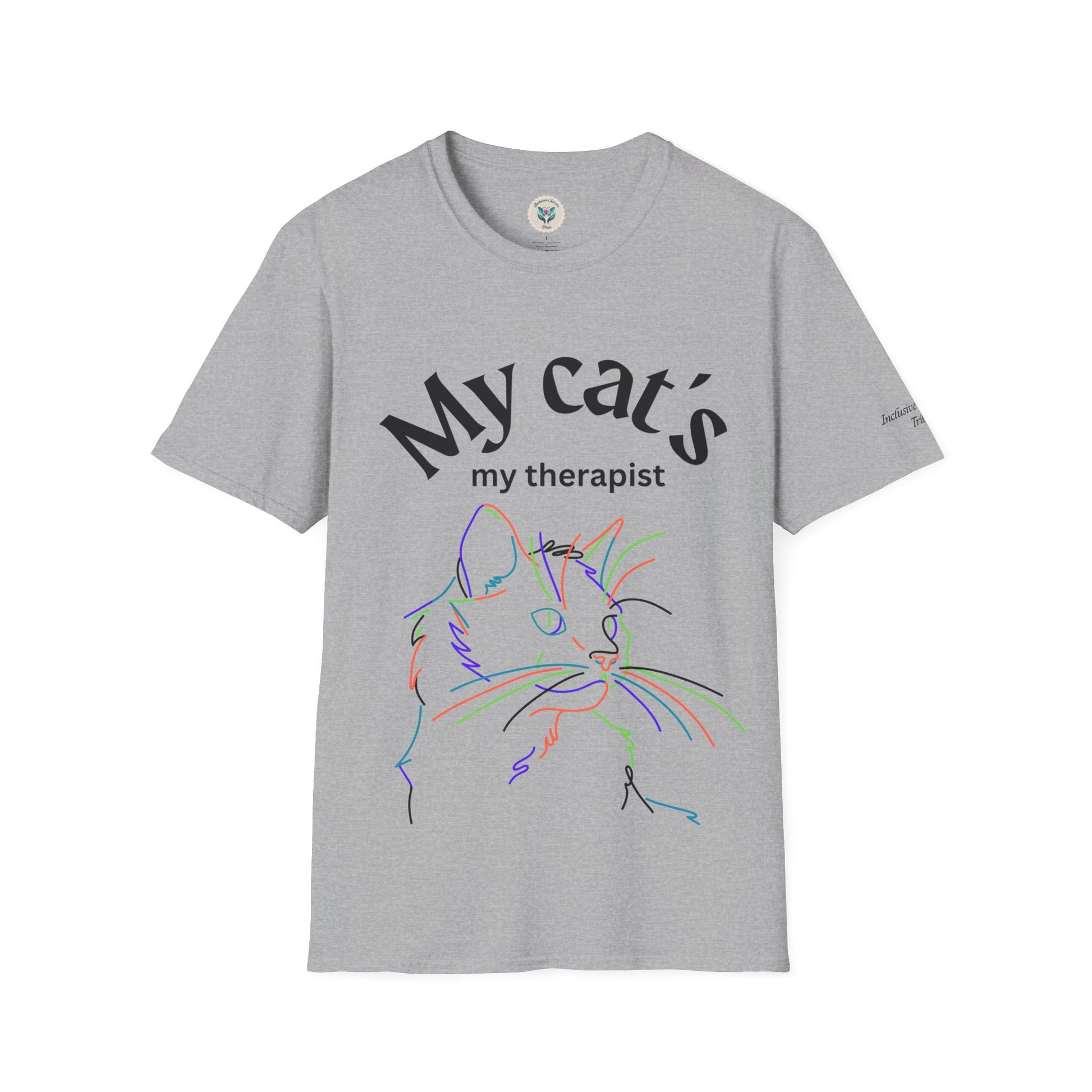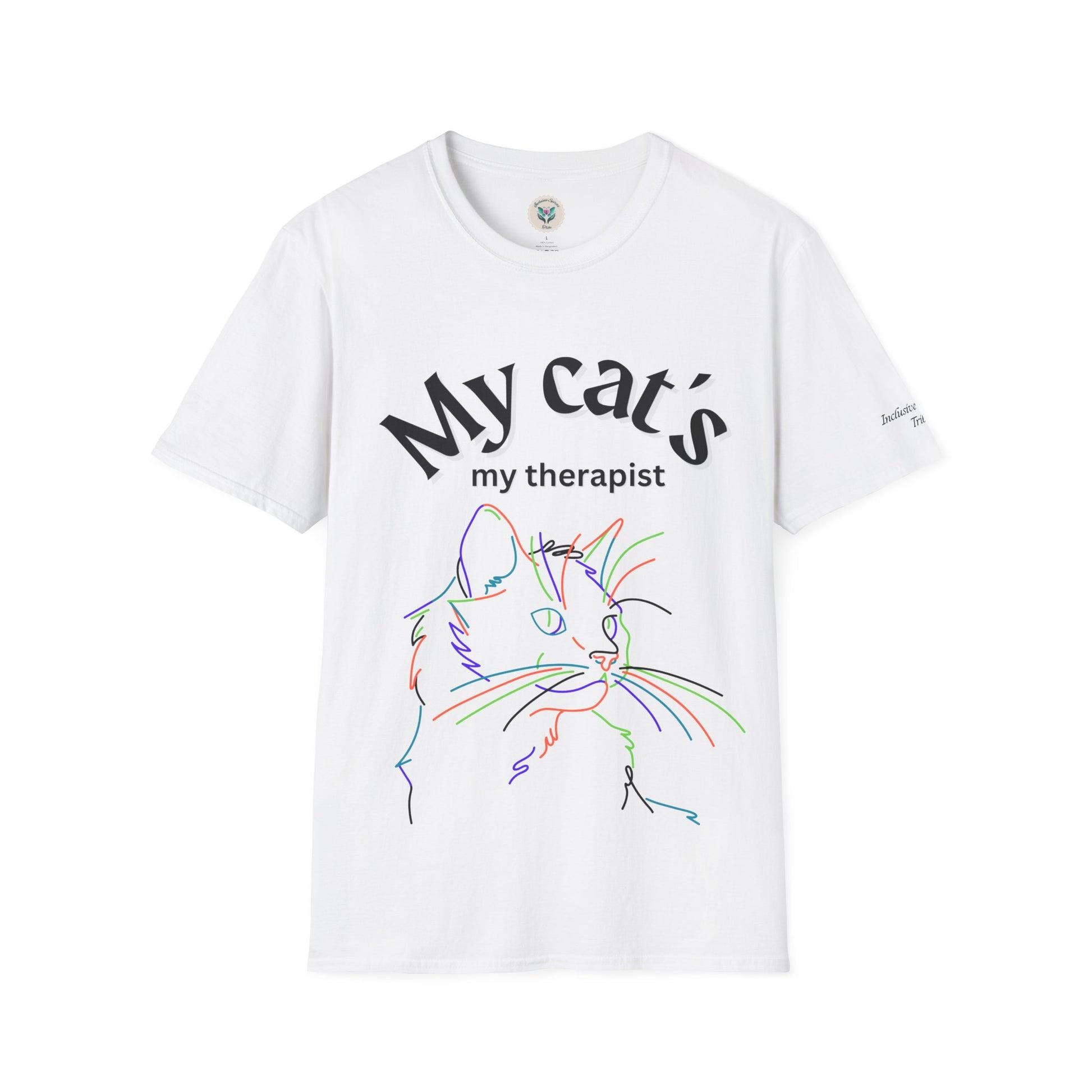 Introducing a delightful softstyle t-shirt that embodies the perfect blend of comfort and whimsy. Featuring a charming illustration with the playful phrase ‘My cat’s my therapist,’ this tee is a fantastic addition for cat lovers and anyone who appreciates a sprinkle of humor in their wardrobe. Its lightweight, breathable fabric makes it ideal for year-round wear, ensuring you feel cozy in any season. This versatile piece pairs well with casual jeans or can be dressed up with a stylish jacket for a semi-formal outing.